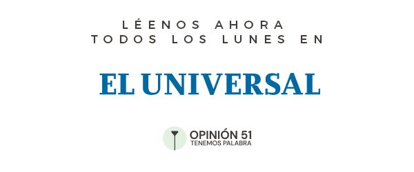 Hoy anunciamos con muchísima emoción que las talentosísimas plumas de Opinión 51 llegarán también a la gran comunidad de lectores y lectoras de El Universal, todos los lunes.