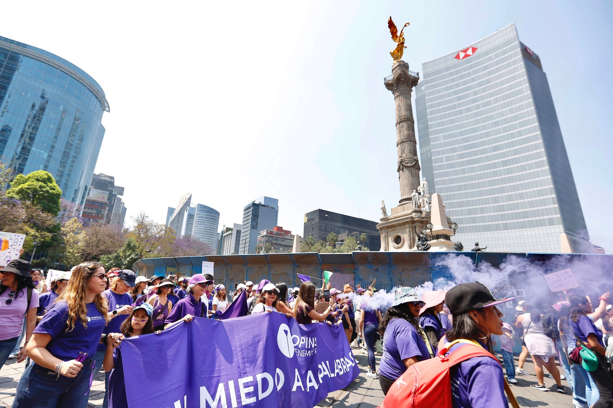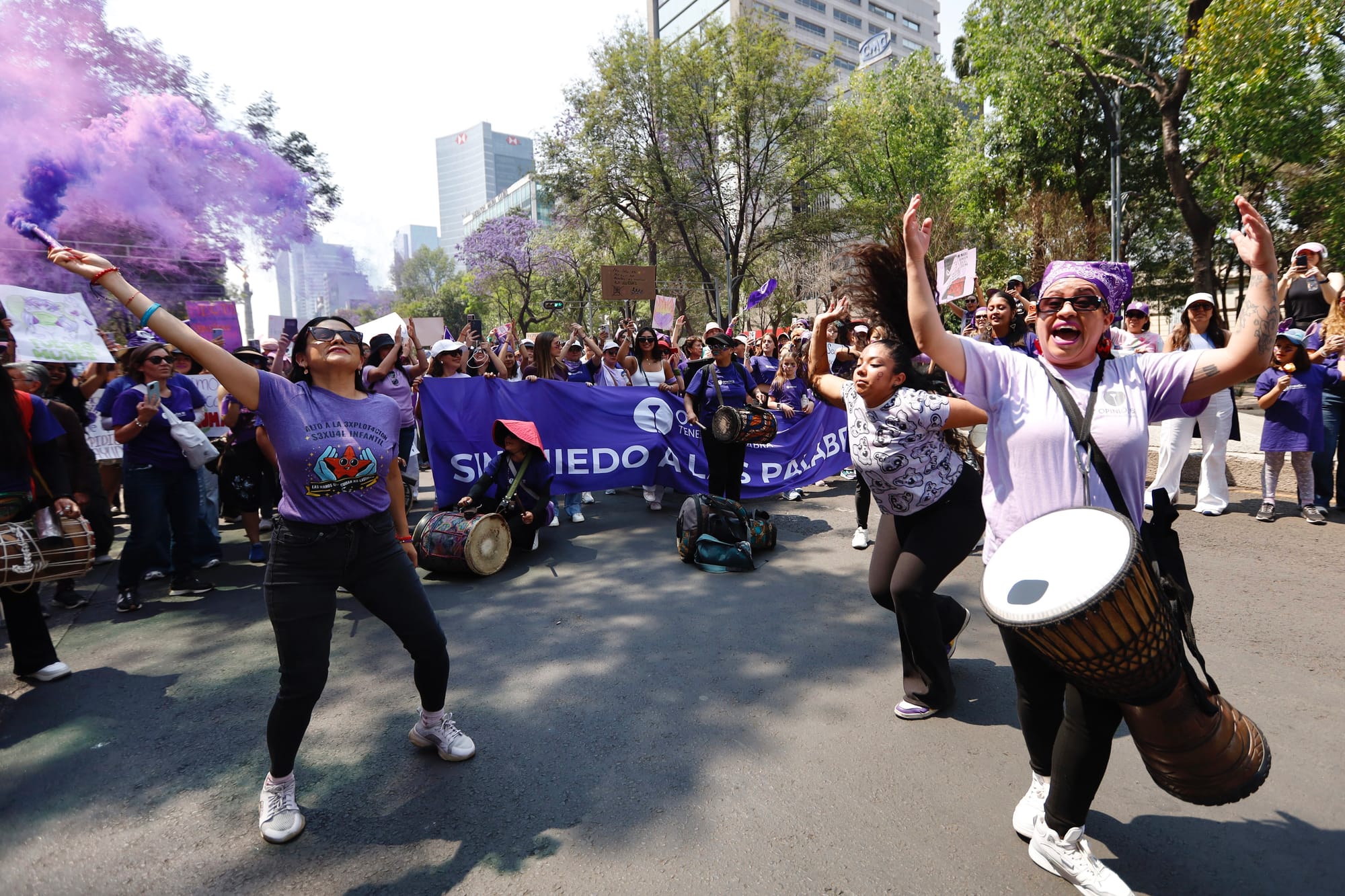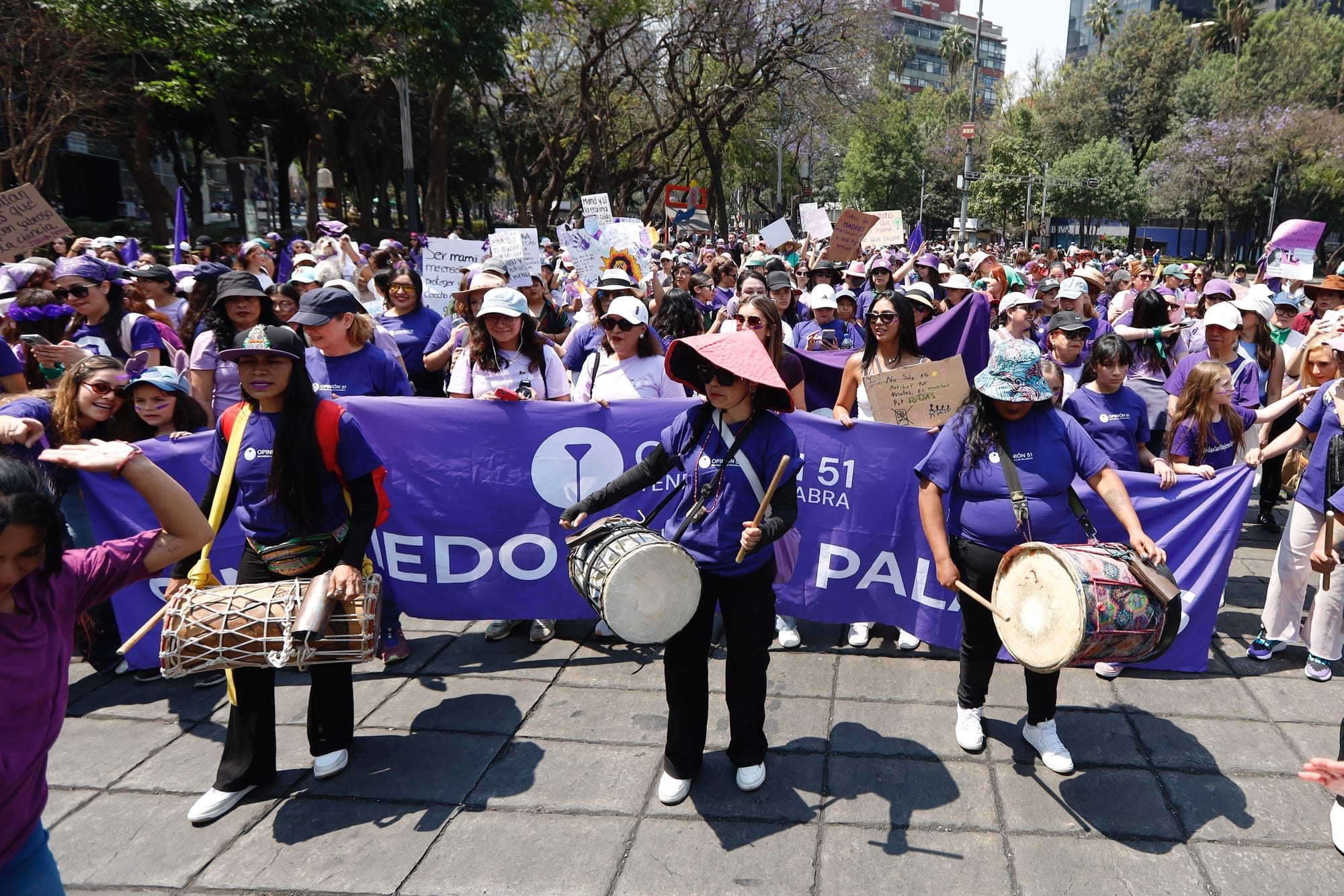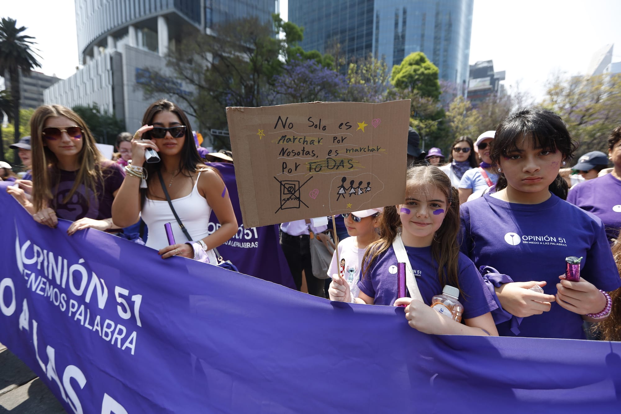 El contingente de Opinión 51 salió puntual de la Torre Mayor. Entre abrazos y coincidencias, el equipo editorial compartió pensamientos, brincos, gritos, baile y corazón. Ahí todas fuimos, otro año más, un mismo grito. Luego, como altavoz para cimbrar conciencias, gritábamos juntas: