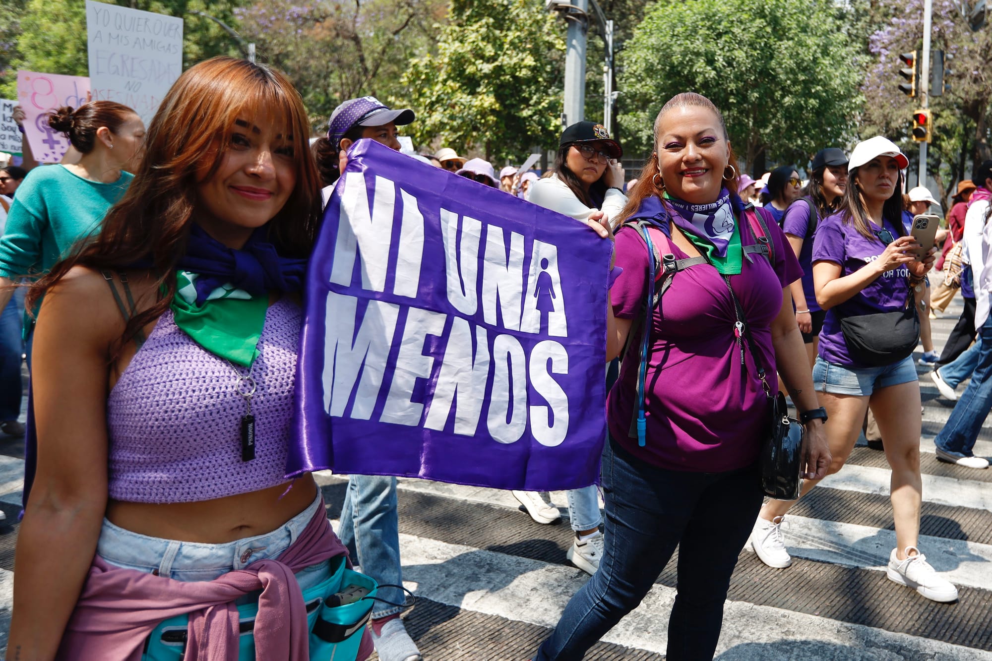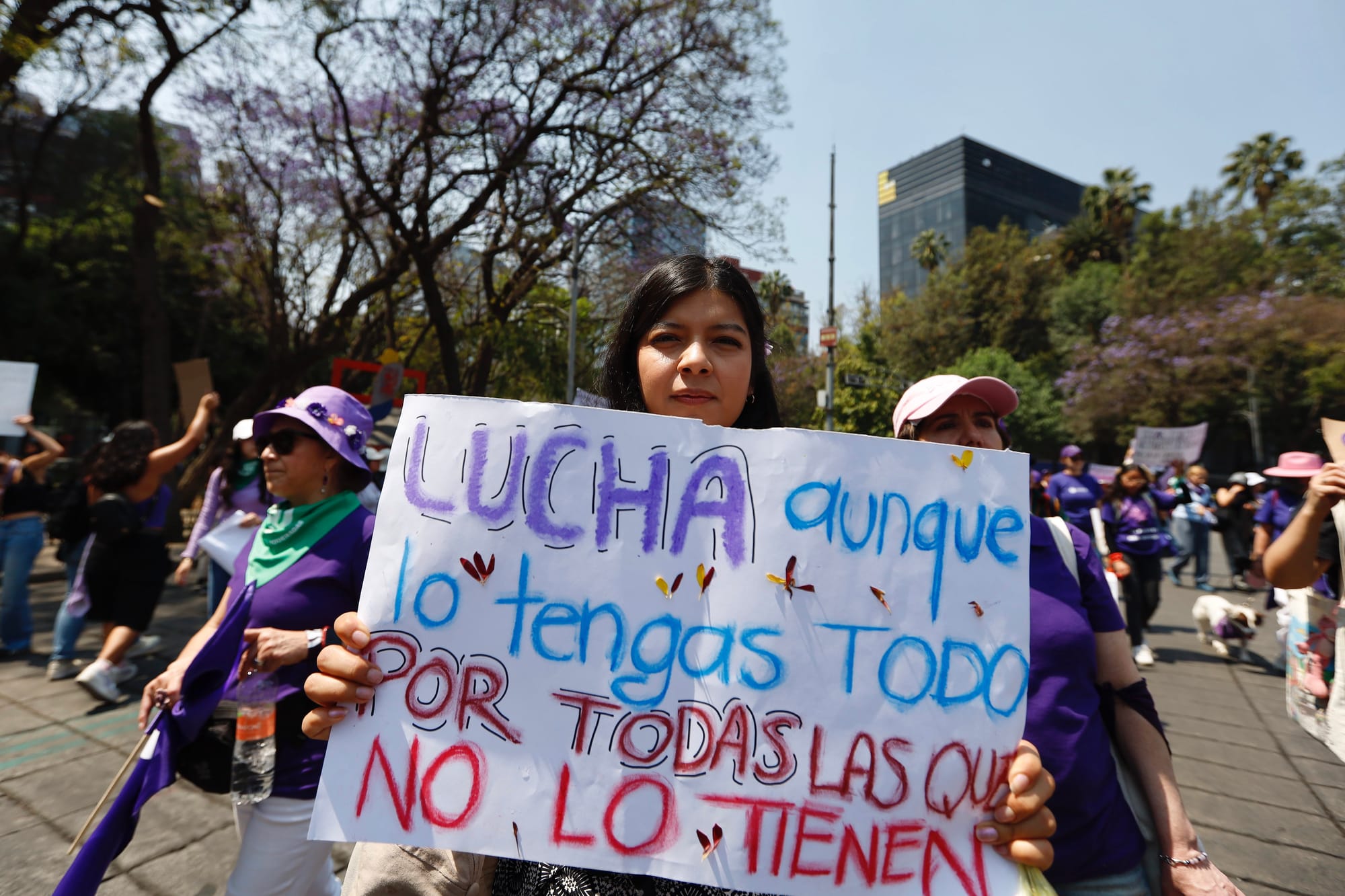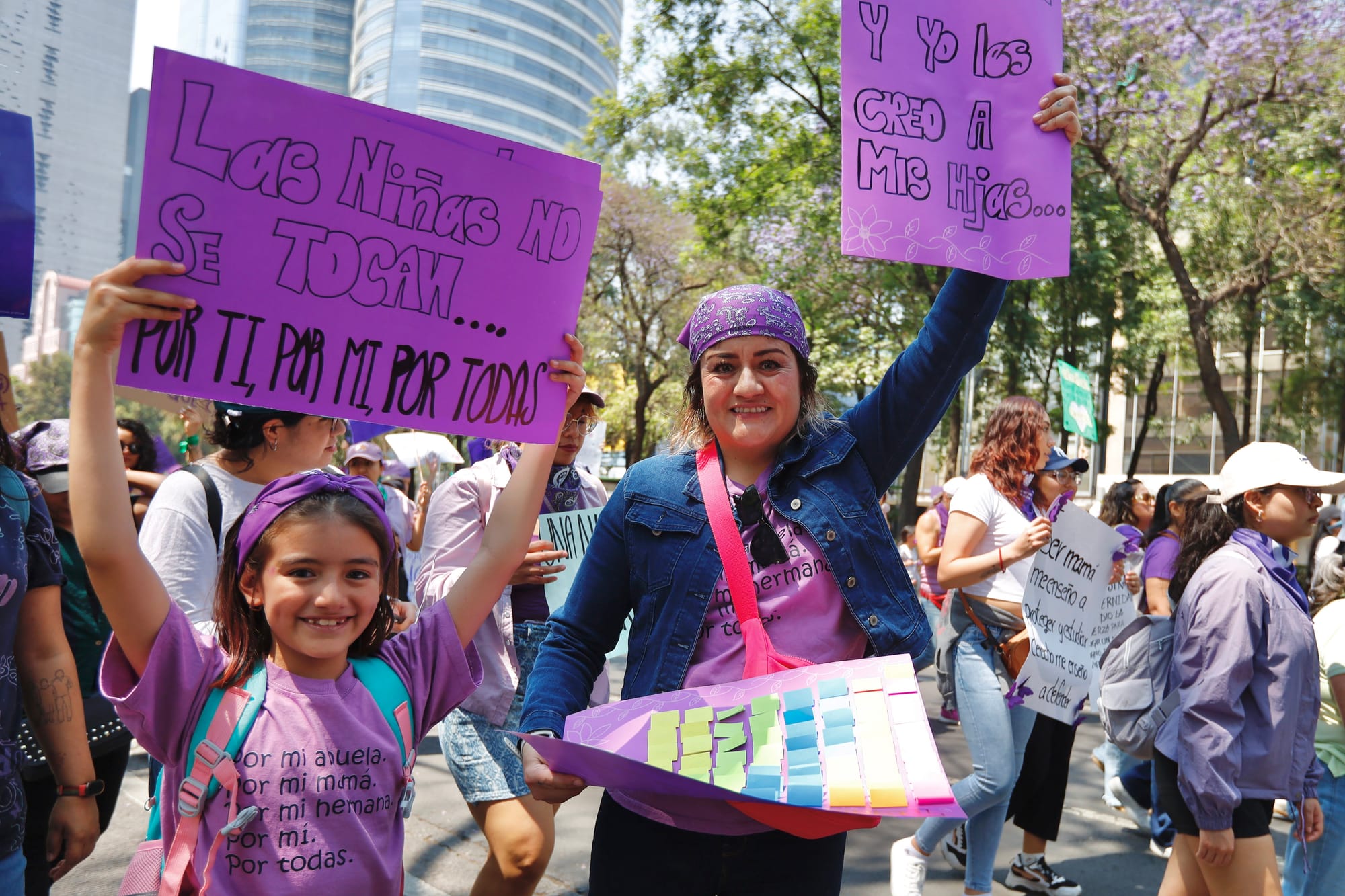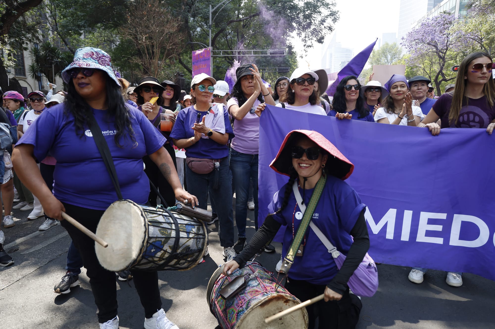 El contingente de Opinión 51 salió puntual de la Torre Mayor. Entre abrazos y coincidencias, el equipo editorial compartió pensamientos, brincos, gritos, baile y corazón. Ahí todas fuimos, otro año más, un mismo grito. Luego, como altavoz para cimbrar conciencias, gritábamos juntas:
