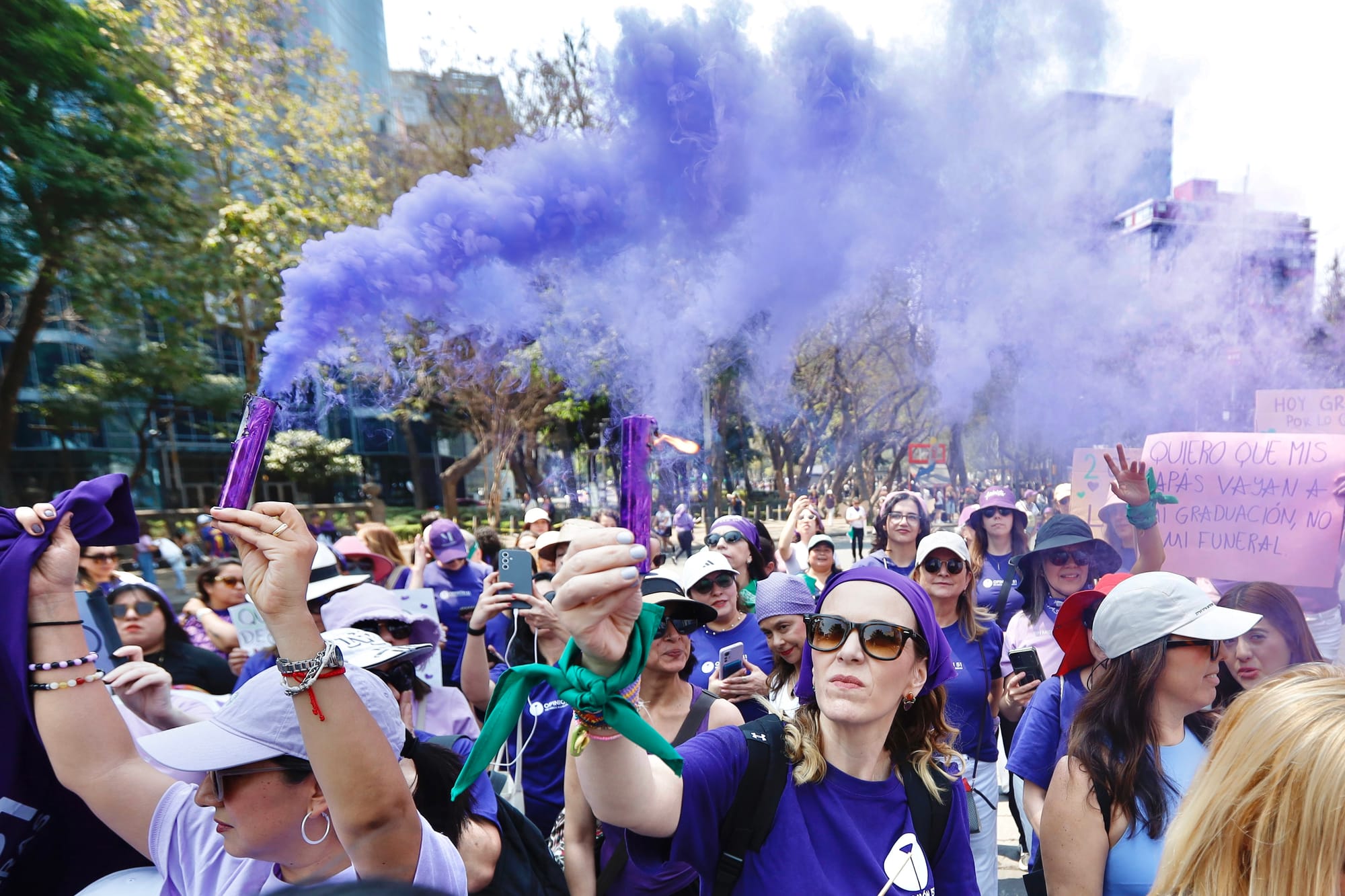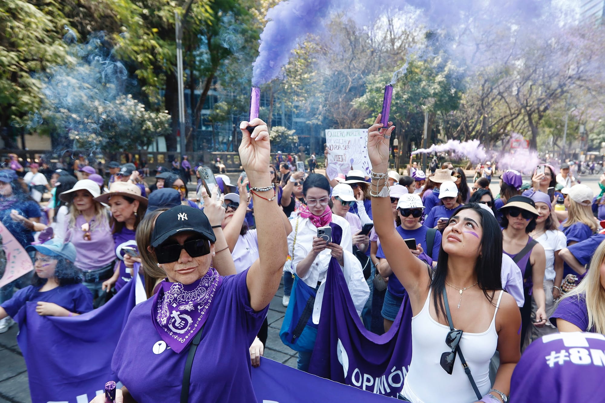 Las bengalas moradas al cielo recordándoles a ellas que marchamos y no las olvidamos, porque hacerlo sería perder la batalla cotidiana.